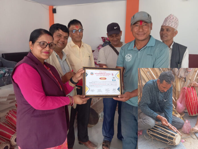 अर्घाखाँची, ३ असार । अर्घाखाँची जिल्लाको पाणिनी गाउँपालिका वडा नं. २, पोखराथोकका पदम बहादुर सार्कीले १५ दिनसम्म पाणिनी गाउँपालिकाको आयोजनामा सञ्चालित “वाद्यवादनका सामग्री बनाउने सिप विकास तालिम” लिए पछि खुशी भए ।