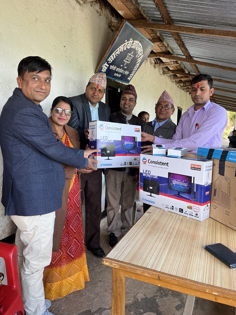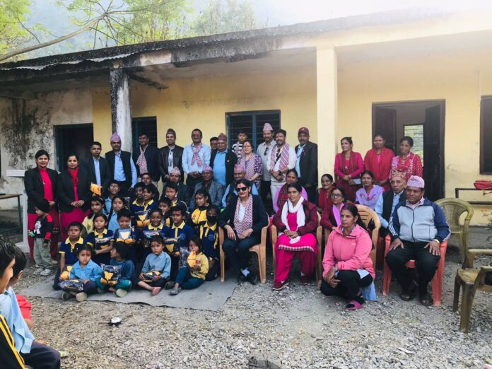 त्यसैगरी साधनबुट्टा आधारभुत विद्यालयका २५ जना विद्यार्थीहरुलाई पनि वितरण गरिएको हो । कार्यक्रममा गाउँपालिकाका उपाध्यक्ष नर्मदा पौडेल, वडा अध्यक्ष युवराज ज्ञवाली, फर्सवाटाकुरा माविका विद्यालय व्यवस्थापन समितीका अध्यक्ष हुमबहादुर जिसी, पुर्व विद्यार्थीहरु अच्यूत गौतम, करुणा पौडेल, शारदा अर्याल गौतम, दिपक मोहन भट्टराई, सुमन सागर जङ केसी लगाएतको उपस्थिती रहेको हो । त्यस्तै आलमदेबी आधारभुत विद्यालय खिदिममा राष्ट्रिय बाणिज्य बैंकको कार्यक्रम अन्र्तगत २ वटा कम्प्युटर सोही विद्यालयलाई हस्तान्तरण पनि गरिएको छ ।