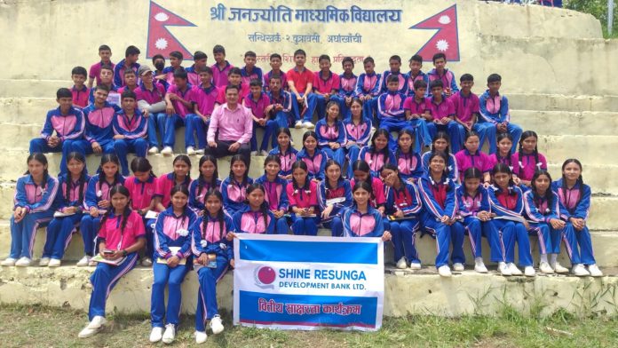 अर्घाखाँची । शाइन रेसुङ्गा डेभलपमेन्ट बैंक लि. सन्धिखर्क शाखाले संस्थागत सामाजिक उत्तरदायित्व अन्तर्गत आज चुत्राबेसिमा रहेको जनज्योति माध्यमिक विद्यालयमा वित्तिय साक्षरता कार्यक्रम सम्पन्न गरेको छ ।